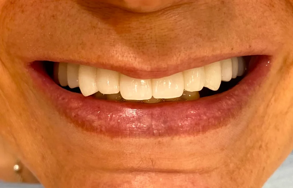 Ese mismo día, Alicia salió de la clínica con una prótesis fija provisional, recuperando estética y comodidad de inmediato.